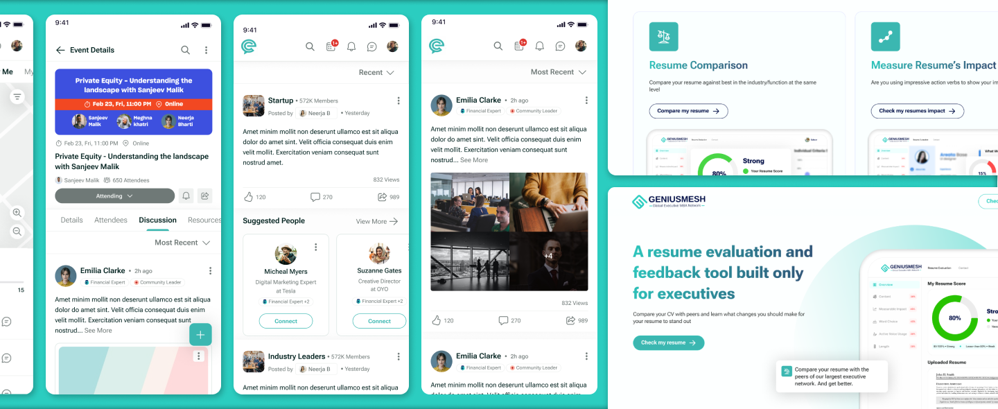 With a design first approach the new version of GeniusMesh addresses usability issues by strategically enhancing navigation and content organization. Specifically designed for executive users, the platform aims to meet their unique career requirements, fostering improved professional networking and facilitating informed career decisions. Added with sense of fun in the networking experience. Fullfiling the overall objective of creating a refined, professional, and engaging platform that precisely catering to executives' discerning needs.