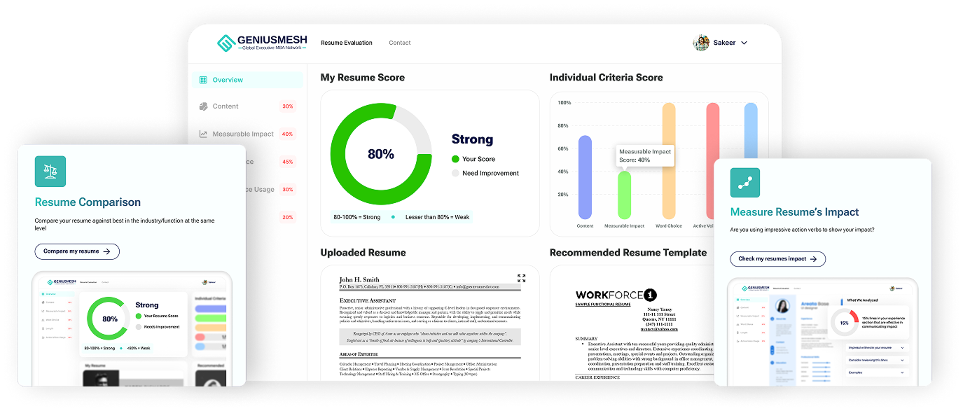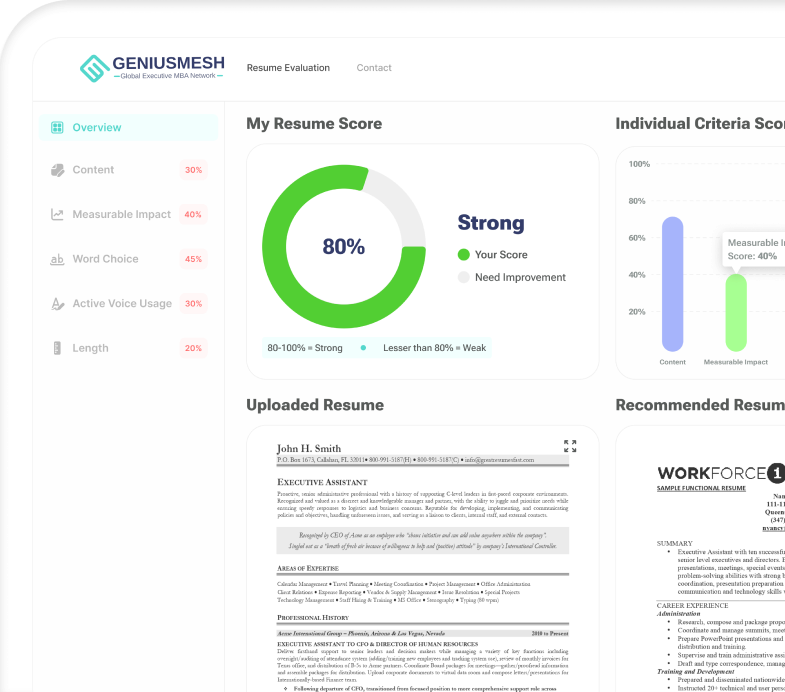 The Genius Mesh Resume Analysis and Builder Tool, designed to elevate one's professional profile and amplify job prospects.