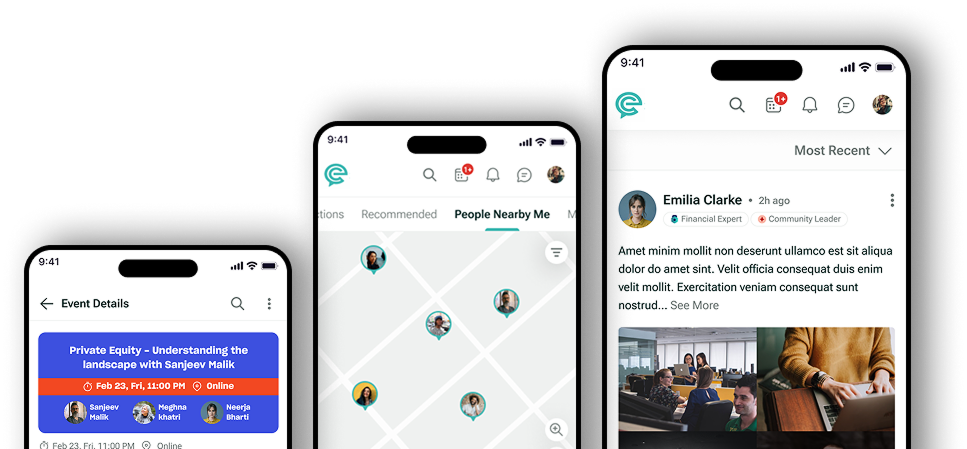 The executive app boasts features like Interactive Feed, Communities/Groups, Effective Networking, and seamless Job Posting and Discovery. This creates a dynamic space for executives to connect, share insights, and stay updated on industry trends.
